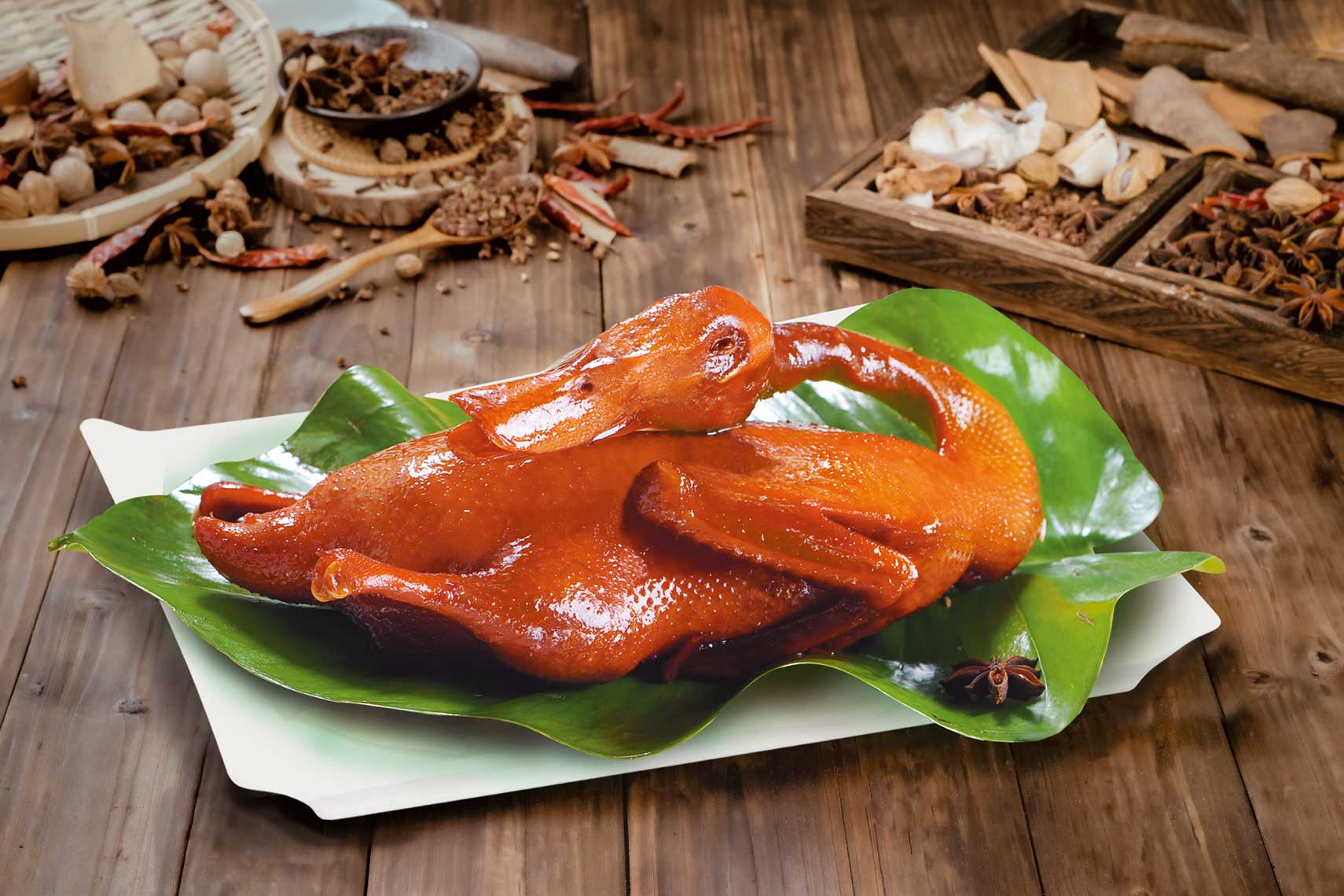 采用天然放養(yǎng)的麻鴨為原料,經(jīng)滾揉腌制、烘烤、醬制等十多道工序制...