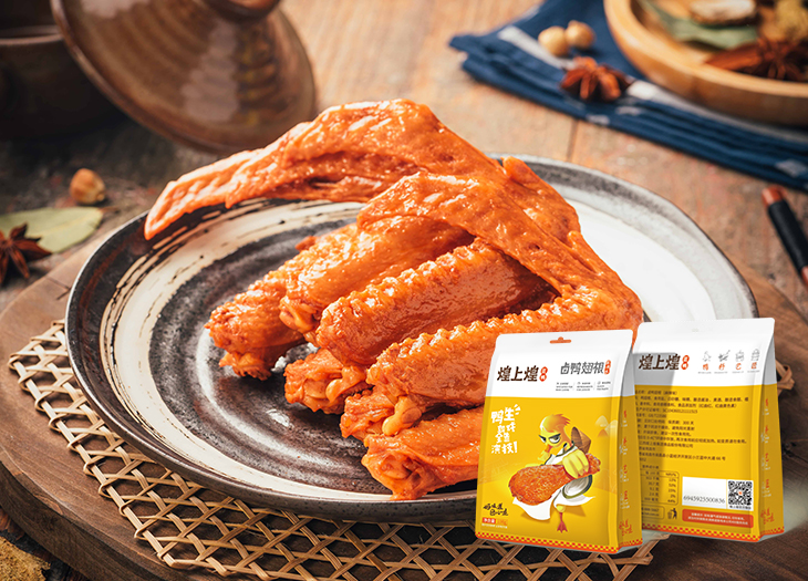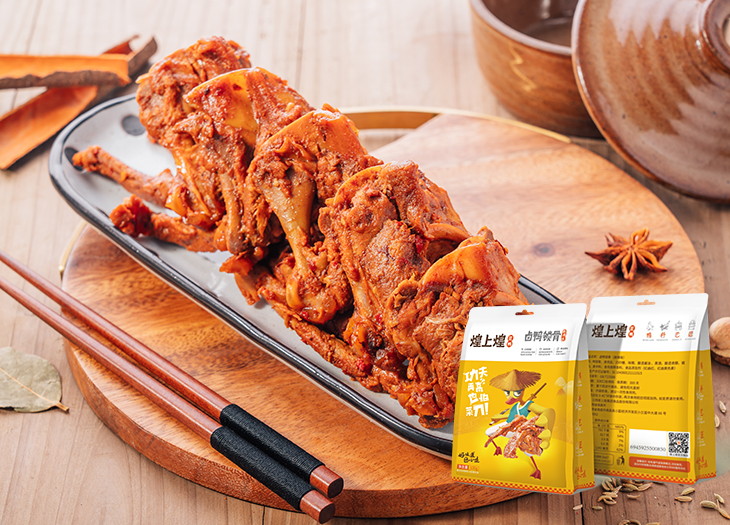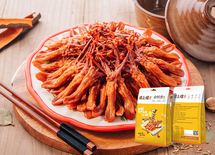 精選規(guī)格統(tǒng)一的鴨鎖骨,濃湯鹵制,使用多種調(diào)味料、紅油拌制調(diào)理,...