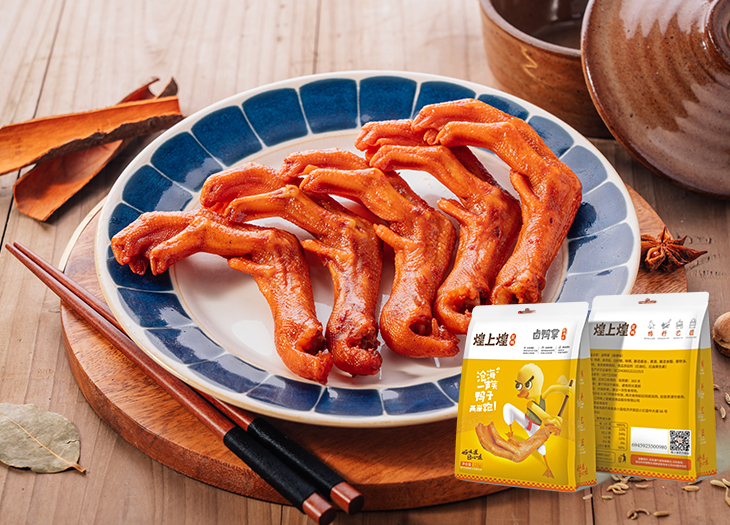 精選體型粗壯的新鮮鴨腳,去凈角質(zhì)皮,蹼皮厚實(shí)。采用20多種中藥、...